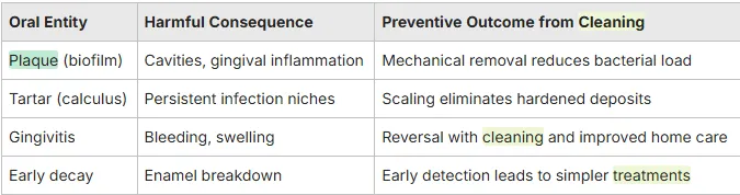 These benefits aren't just fluff; they're your long-term smile insurance. Check out how cleanings tackle different oral villains: